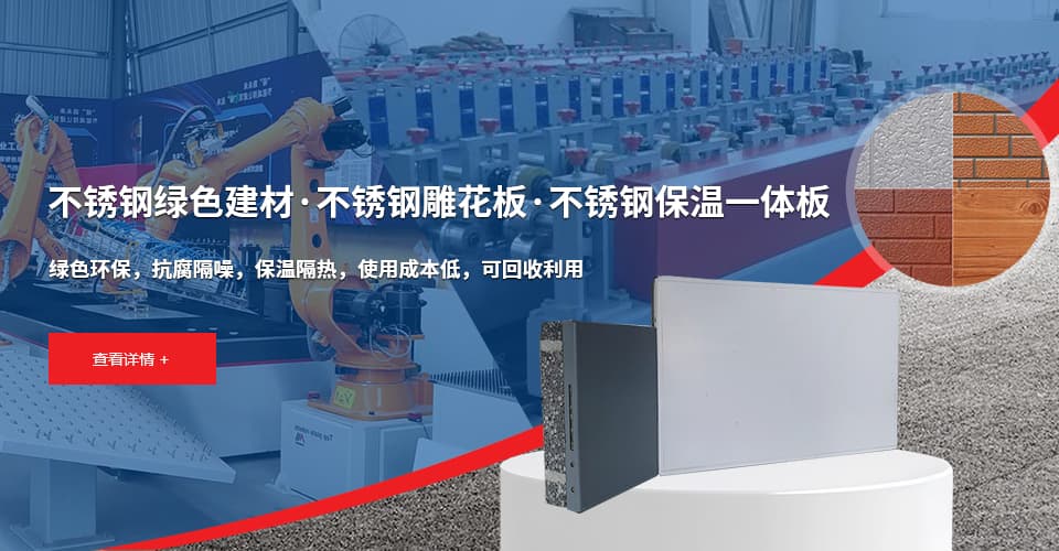 不銹鋼雕花板是一種新型的保溫裝飾一體板,保溫,隔熱,B級阻燃,防水防潮,表面是不銹鋼材質,內芯是高密度發泡的聚氨酯,造價低,安裝快,已應用于多種辦公樓、商務樓外裝等。